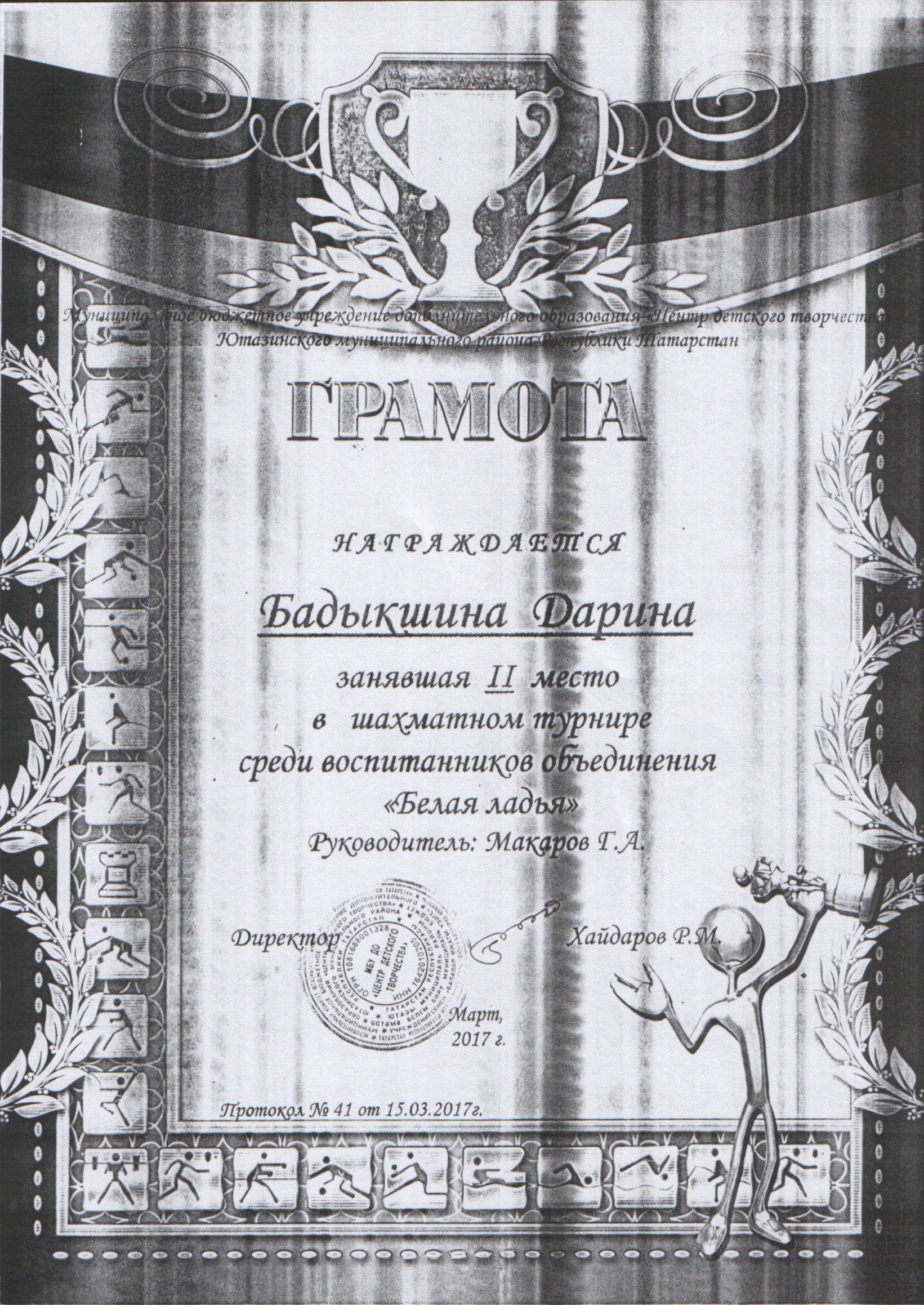 /Грамота 2 степени в шахматном турнире "Белая ладья".Бадыкшина Дарина.bmp