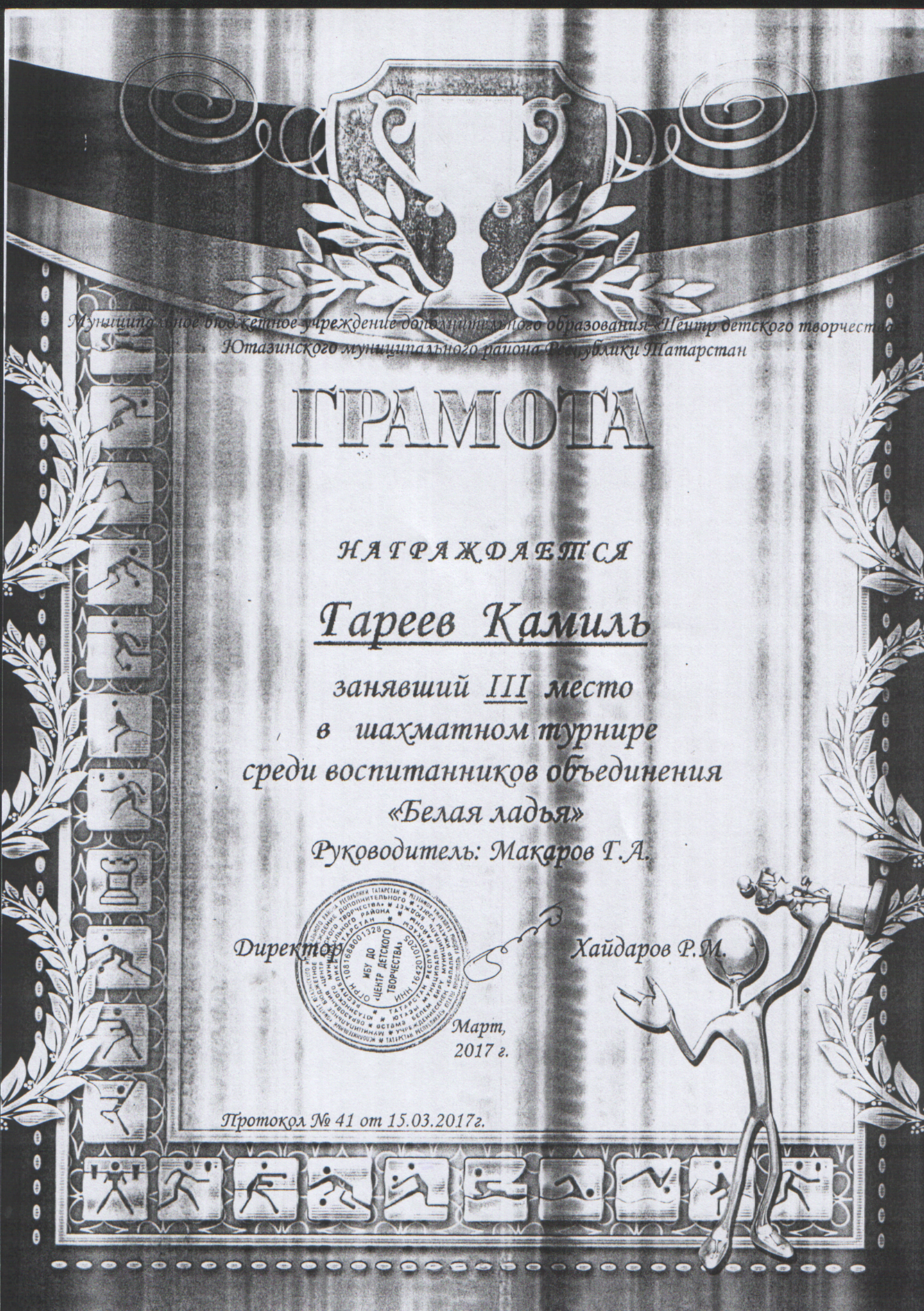 /Грамота 3 степени в шахматном туринре среди воспитанников ЦДТ. Гареев Камиль.bmp
