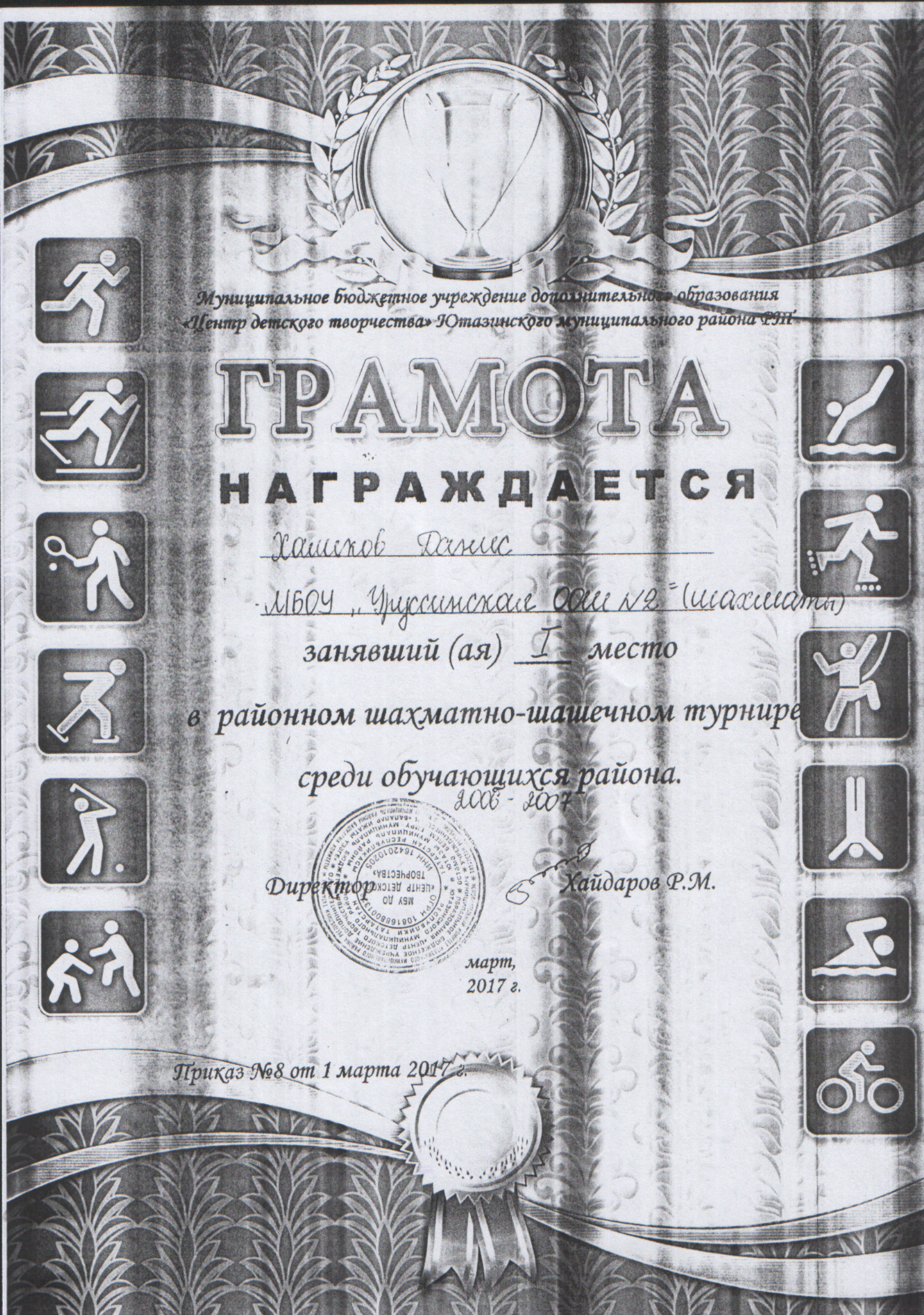 /Грамота 1 степени в районном шахматно - шашечном турнире. Халиков Данис.bmp