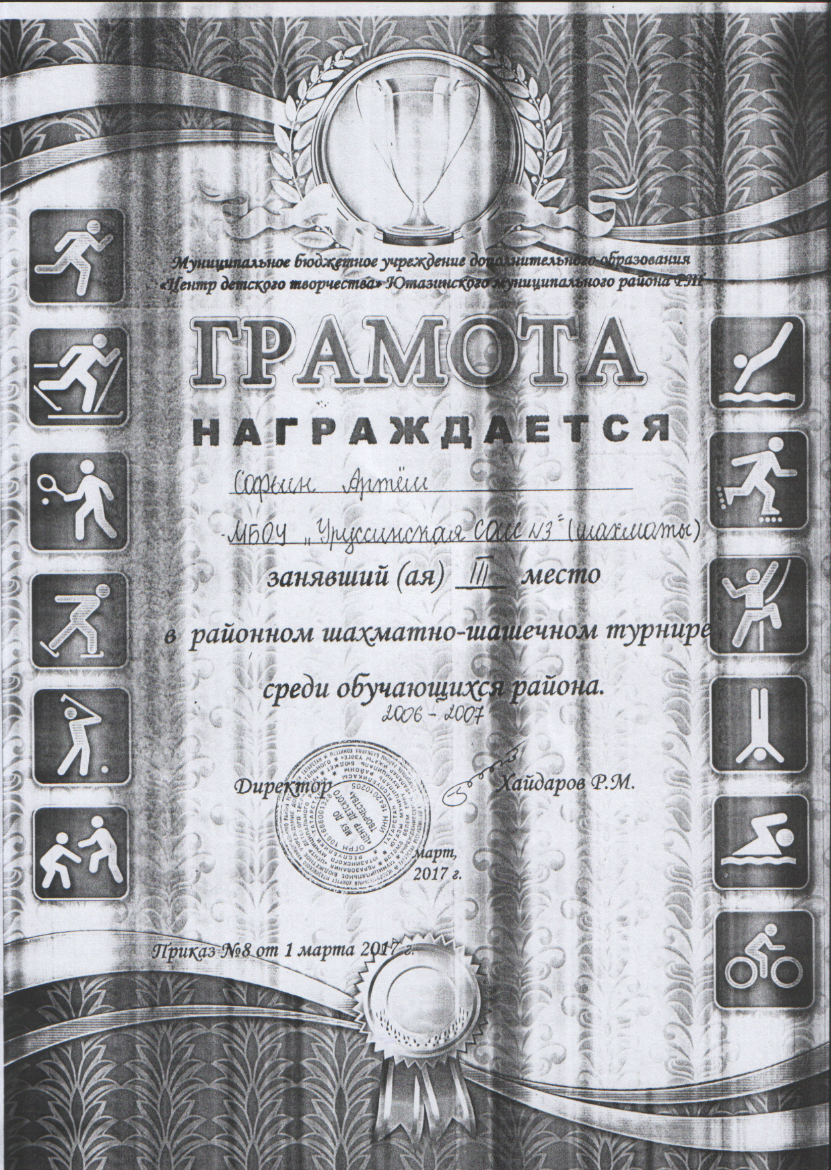 /Грамота 3 степени в районном шахматно - шашечном турнире. Софьин Артем.bmp