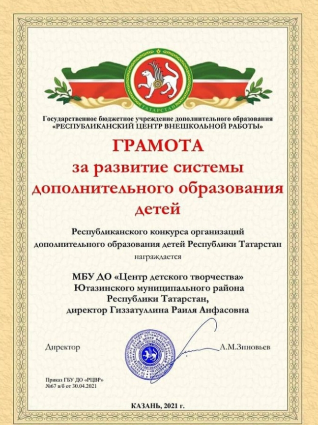 Муниципальное бюджетное учреждение дополнительного образования «Центр детского творчества» Ютазинского муниципального района Республики Татарстан/Татарстан Республикасы Ютазы муниципаль районы «Балалар иҗаты үзәге» өстәмә белем муниципаль бюджет учреждениесе