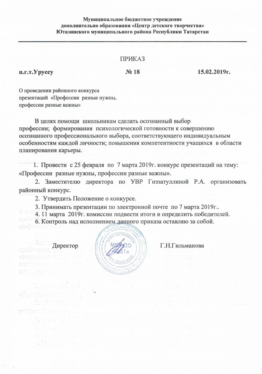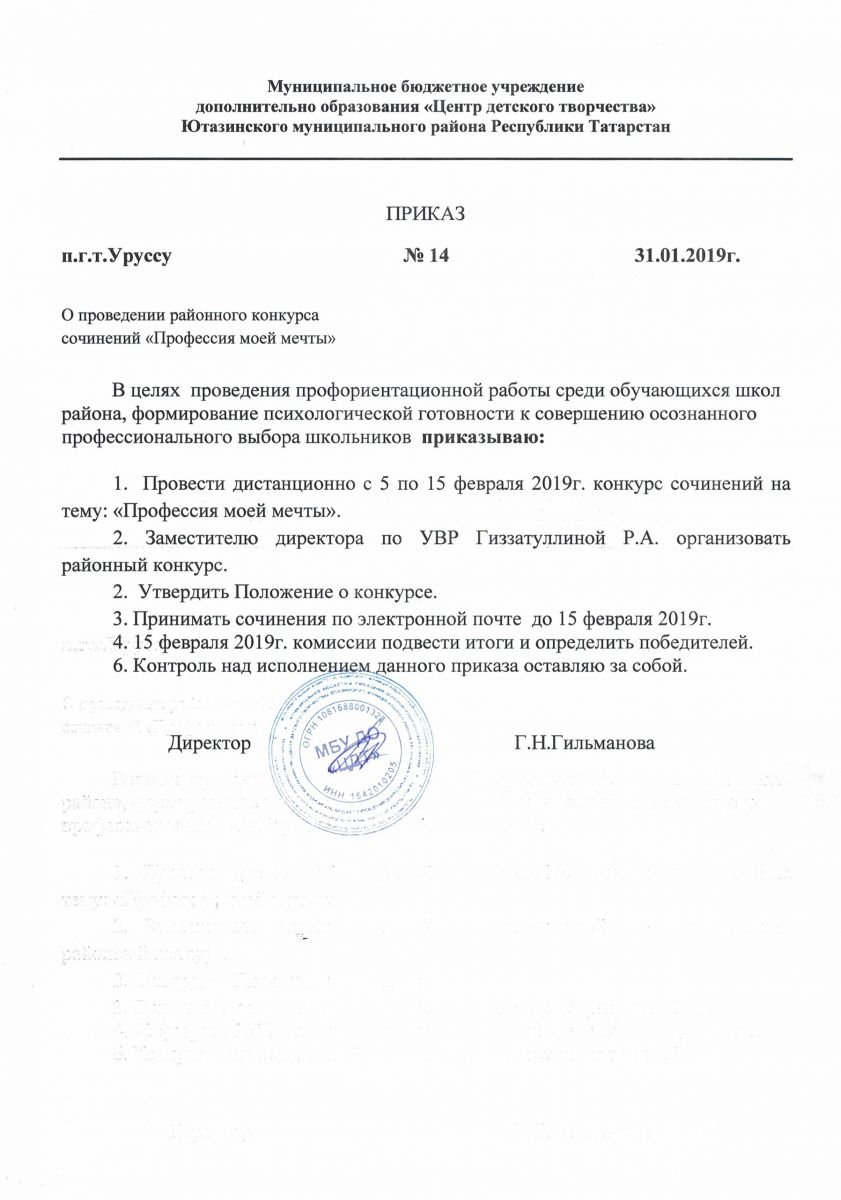 /Приказ №14 о проведении районного конкурса сочинений "Профессия моей мечты".jpg
