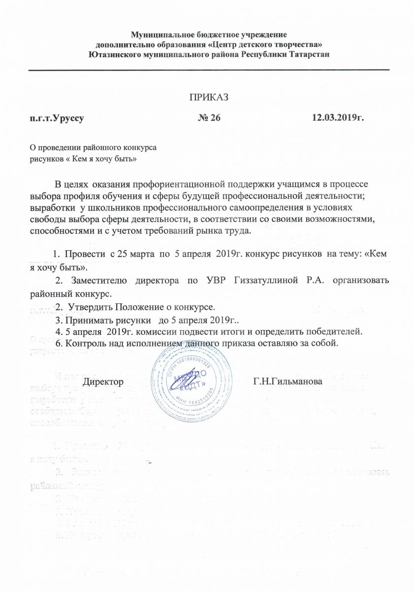 /Приказ №26 о проведении районного конкурса рисунков "Кем я хочу быть".jpg