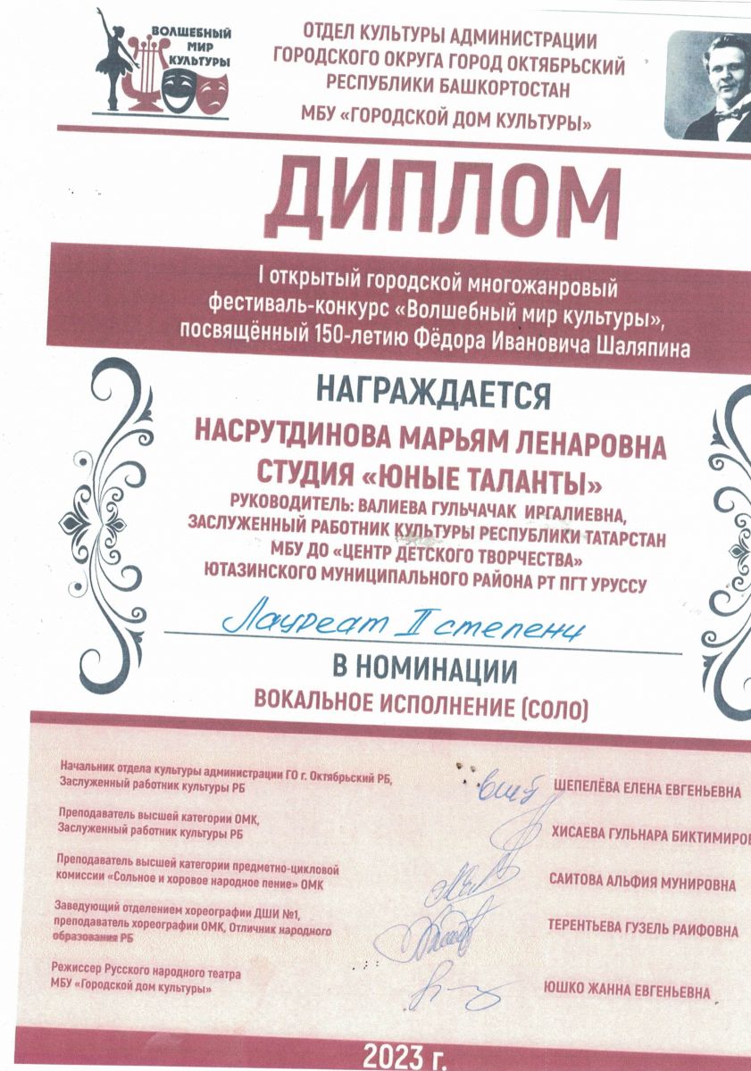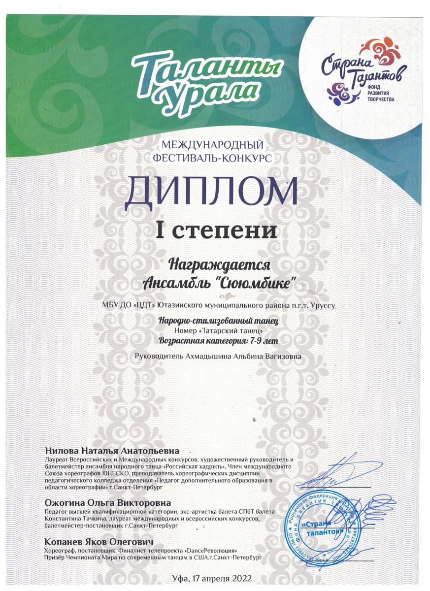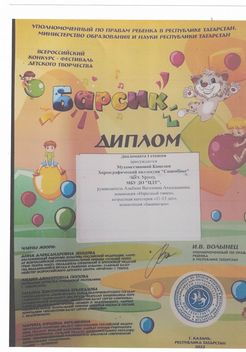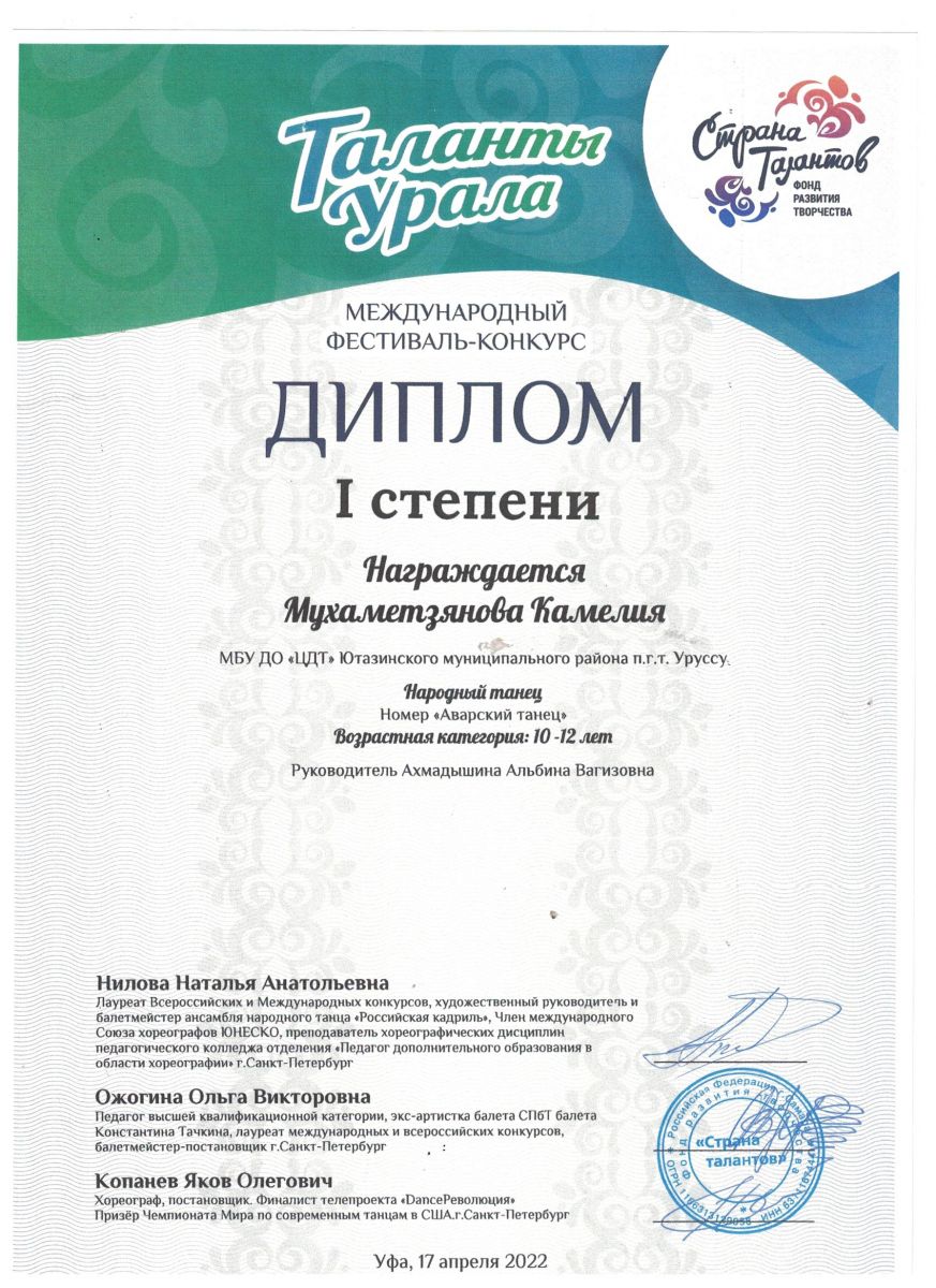/Диплом 1 степени Мхаметзянова Камелия Международный фестиваль конкурс Таланты Урала 2022.jpeg