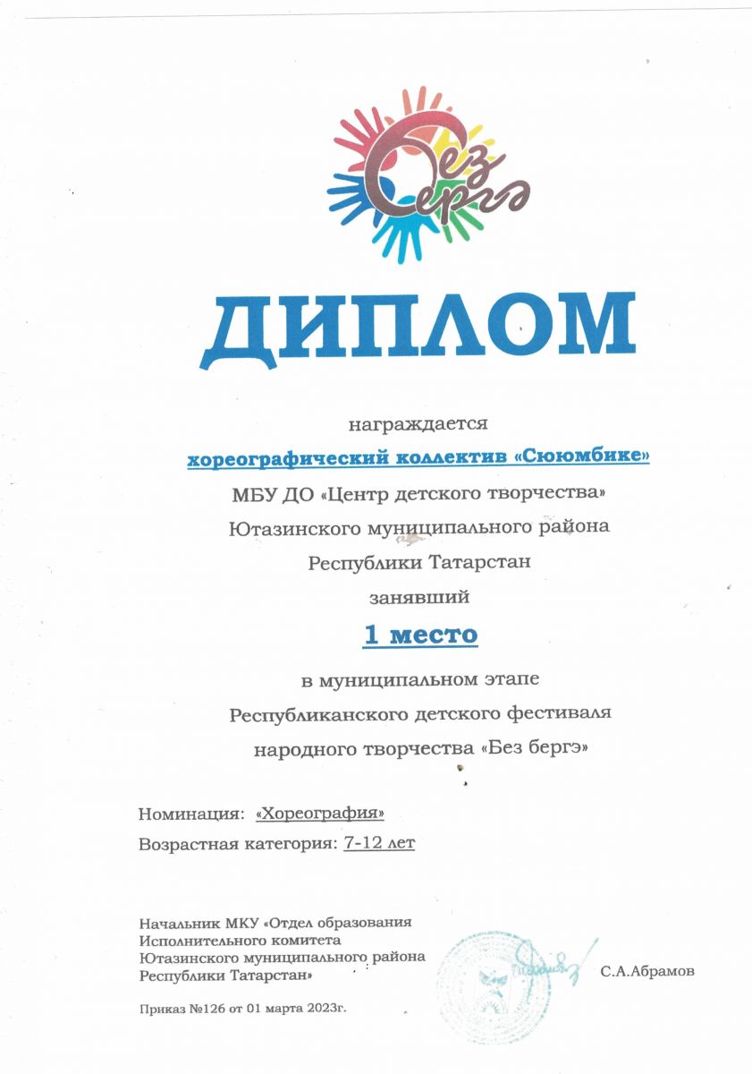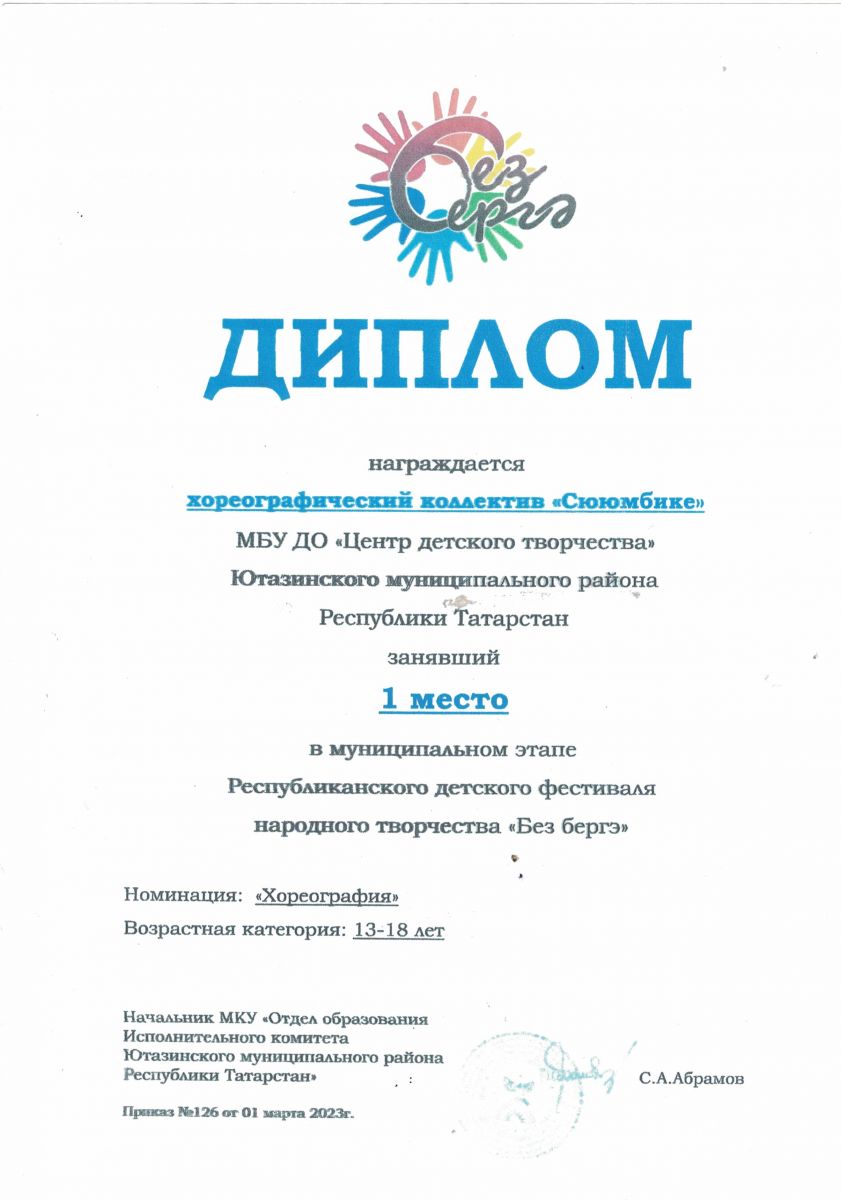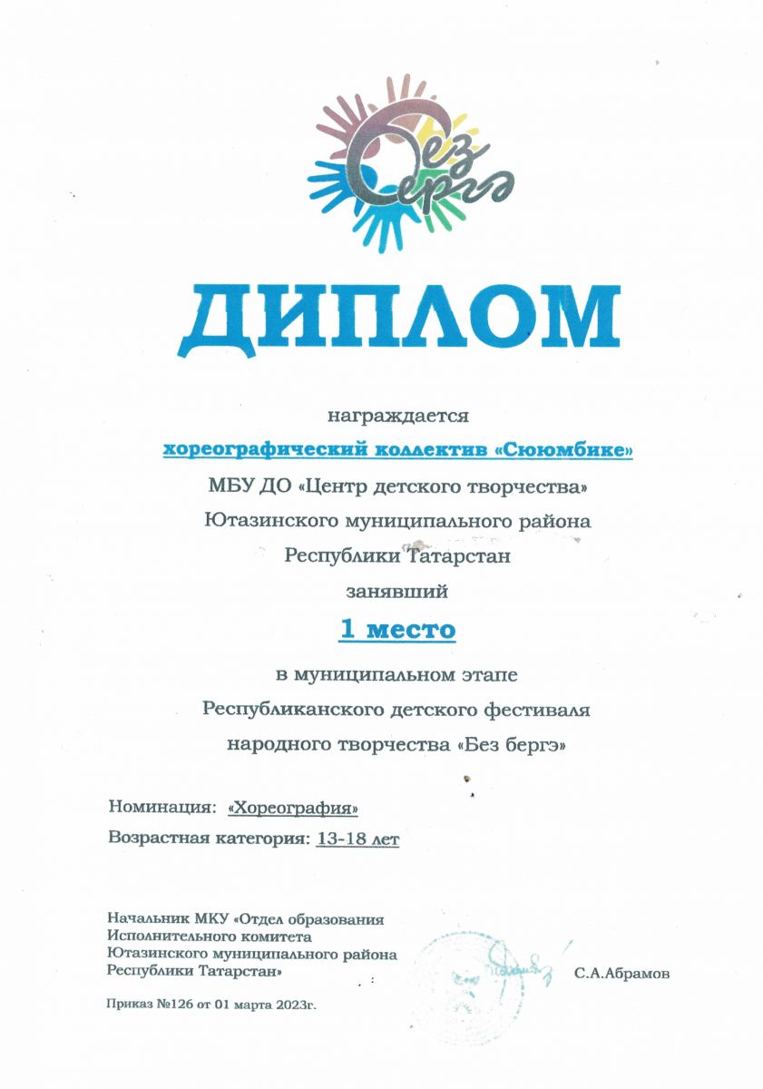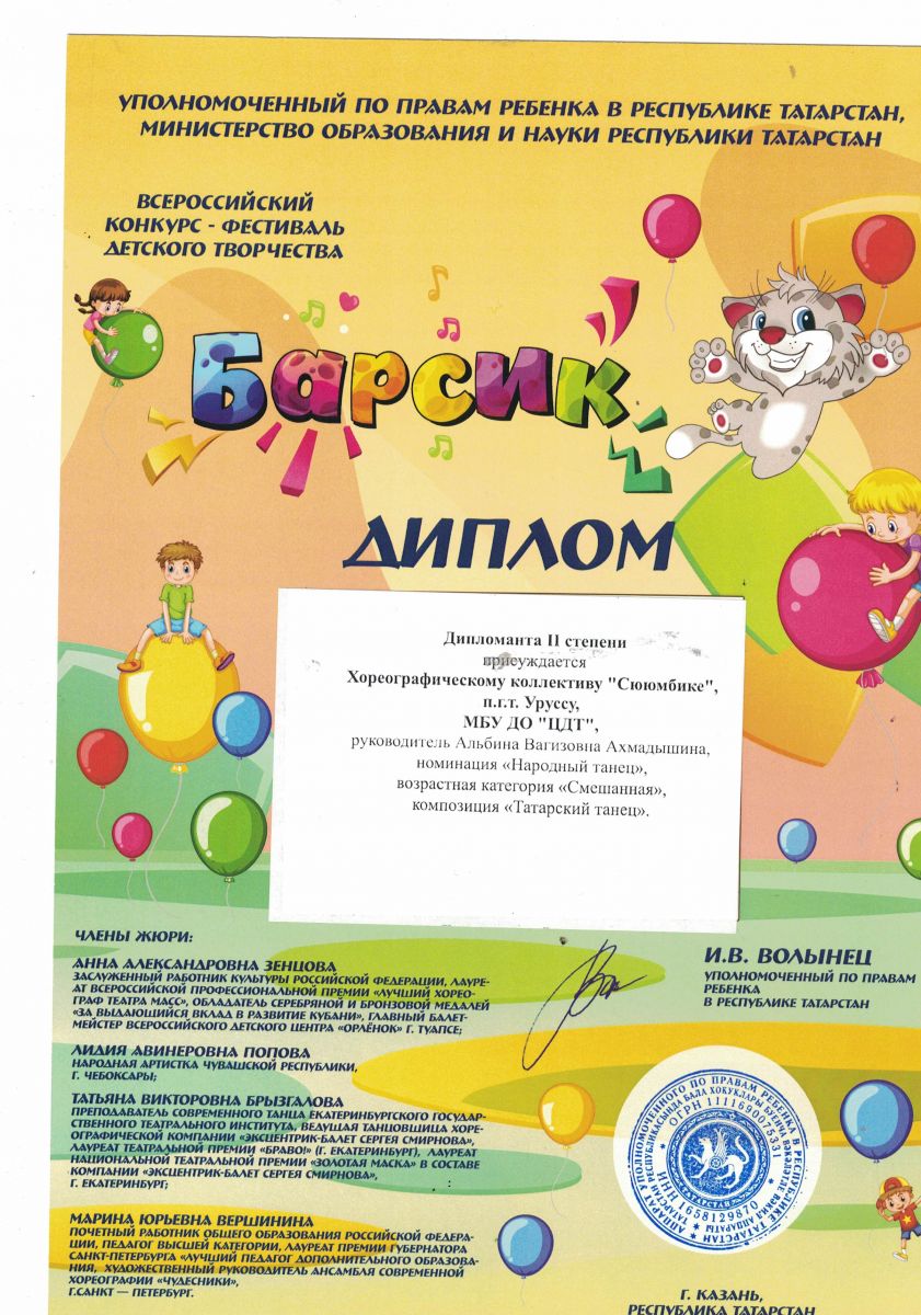 /Диплом 1 степени хорографический ансамбль Сююмбике 7-9 лет Международный фестиваль конкурс.jpeg