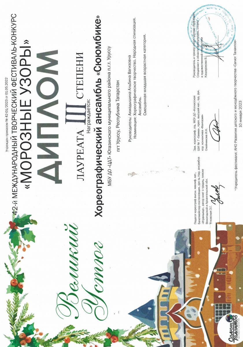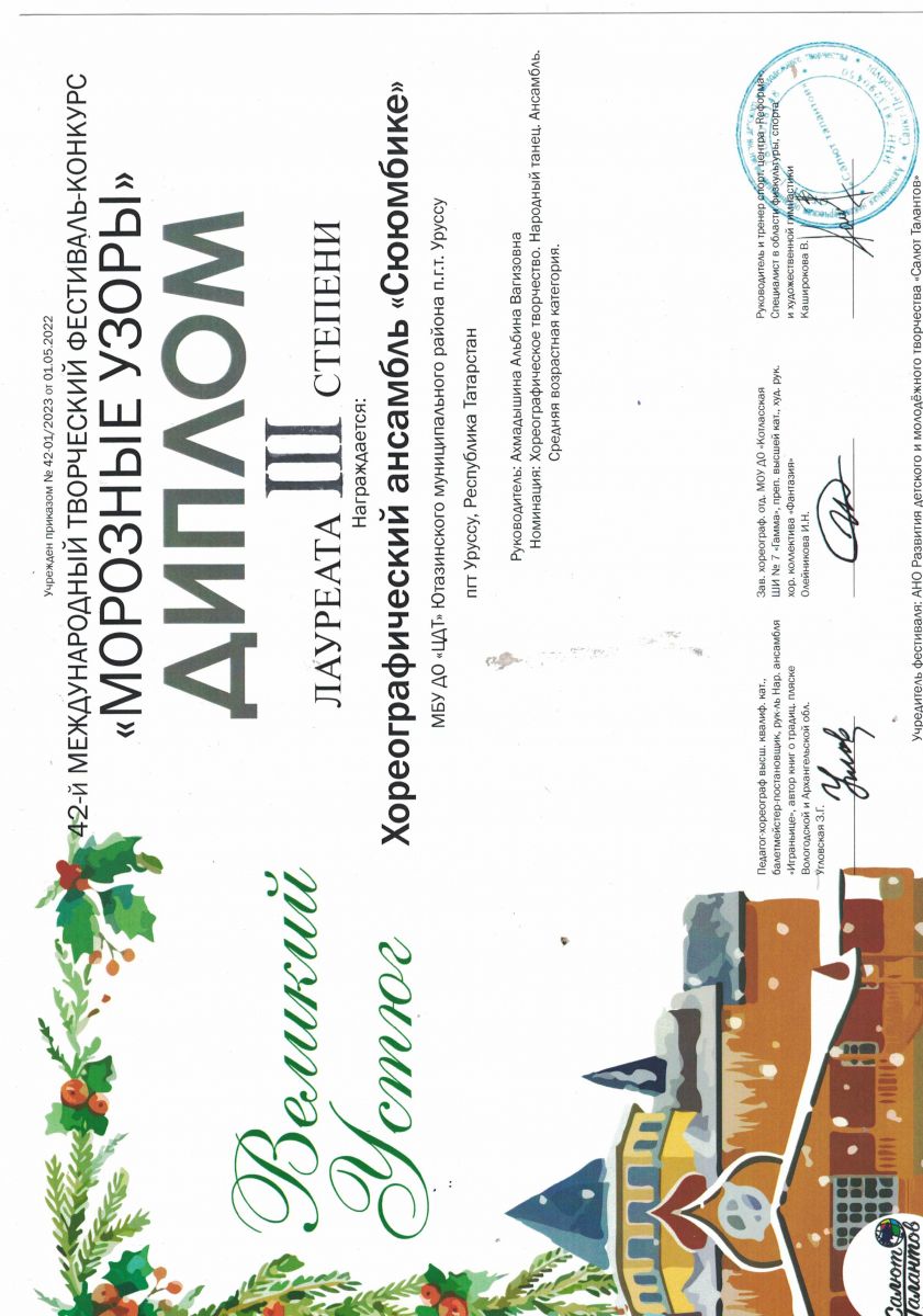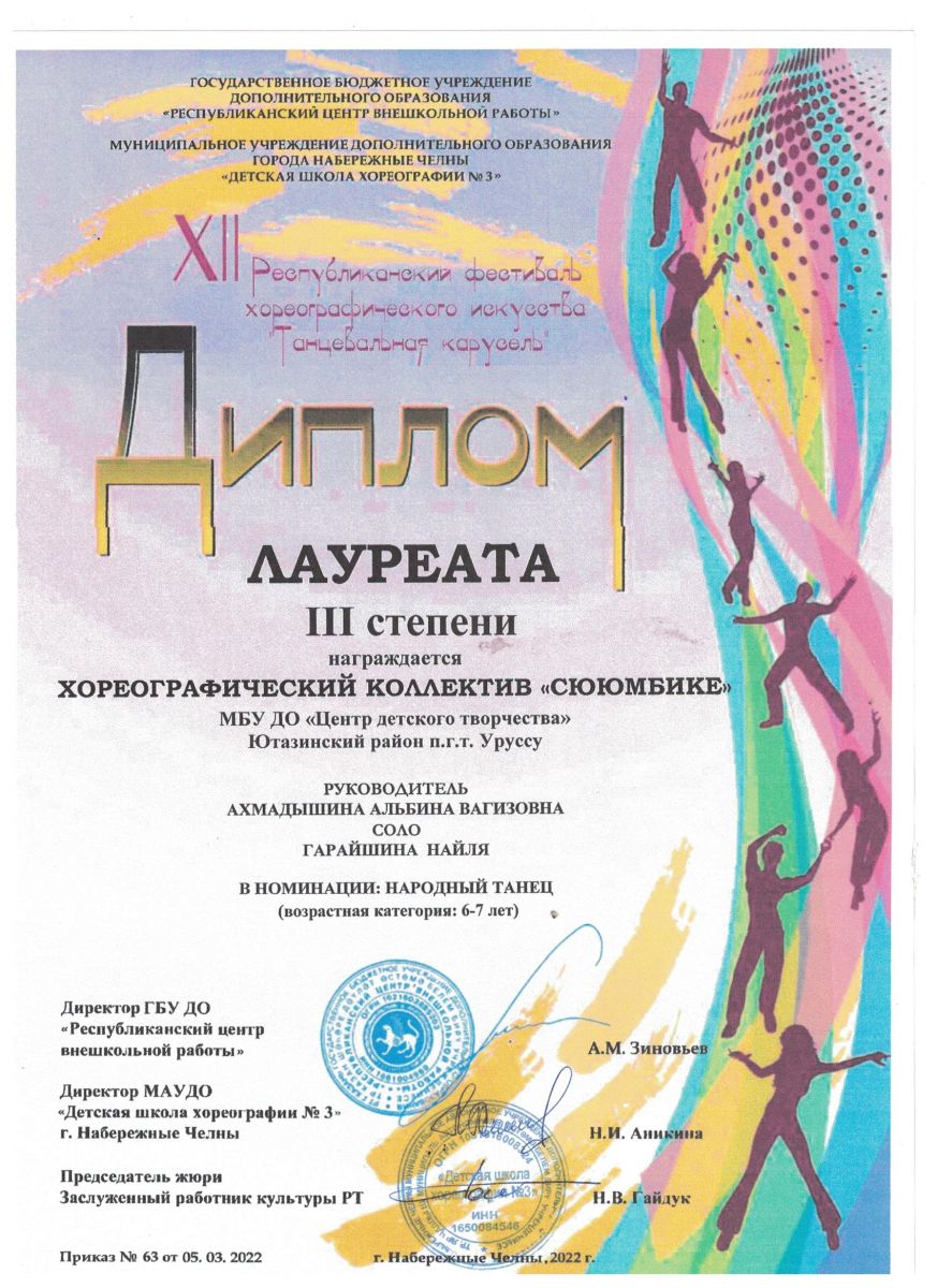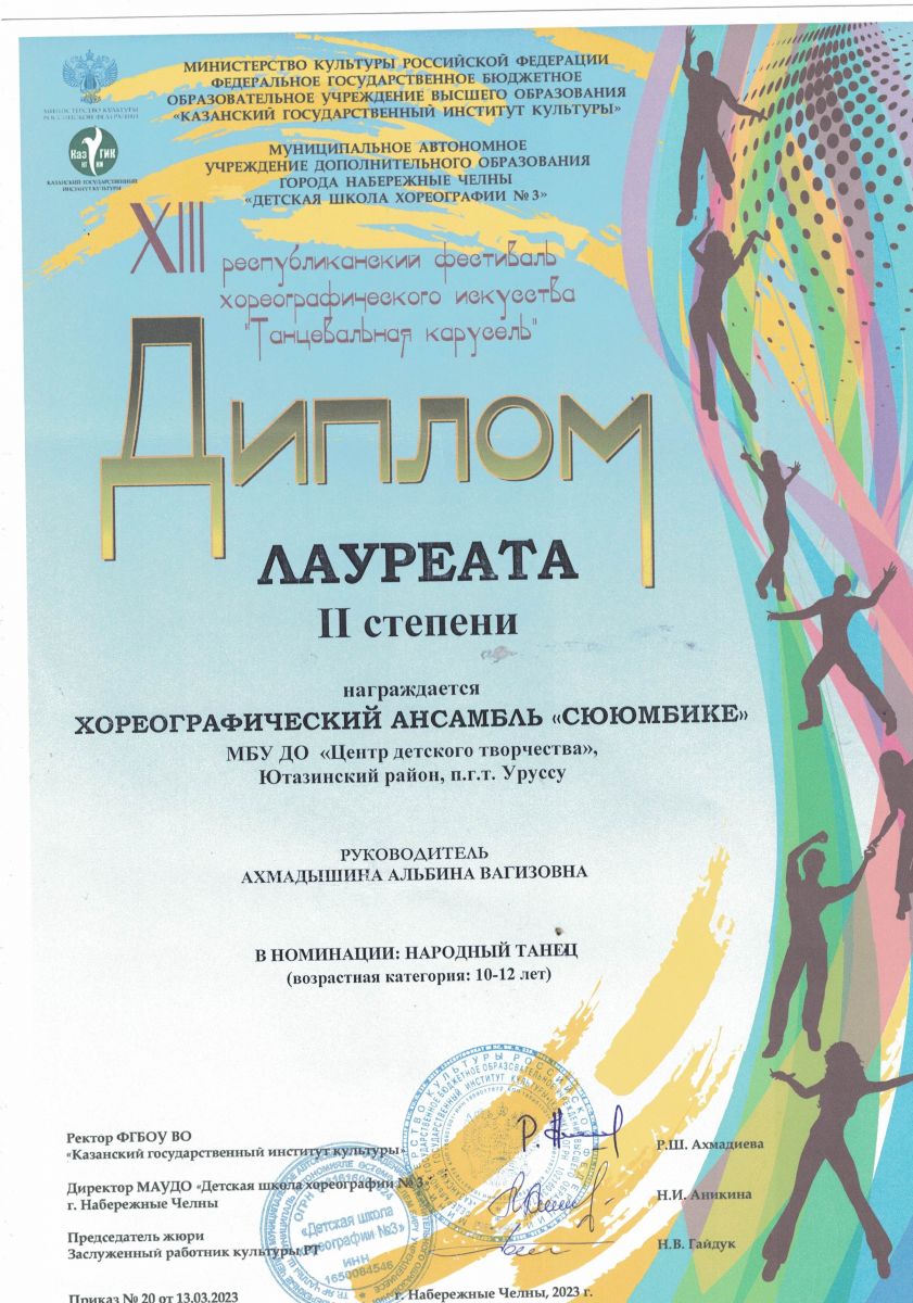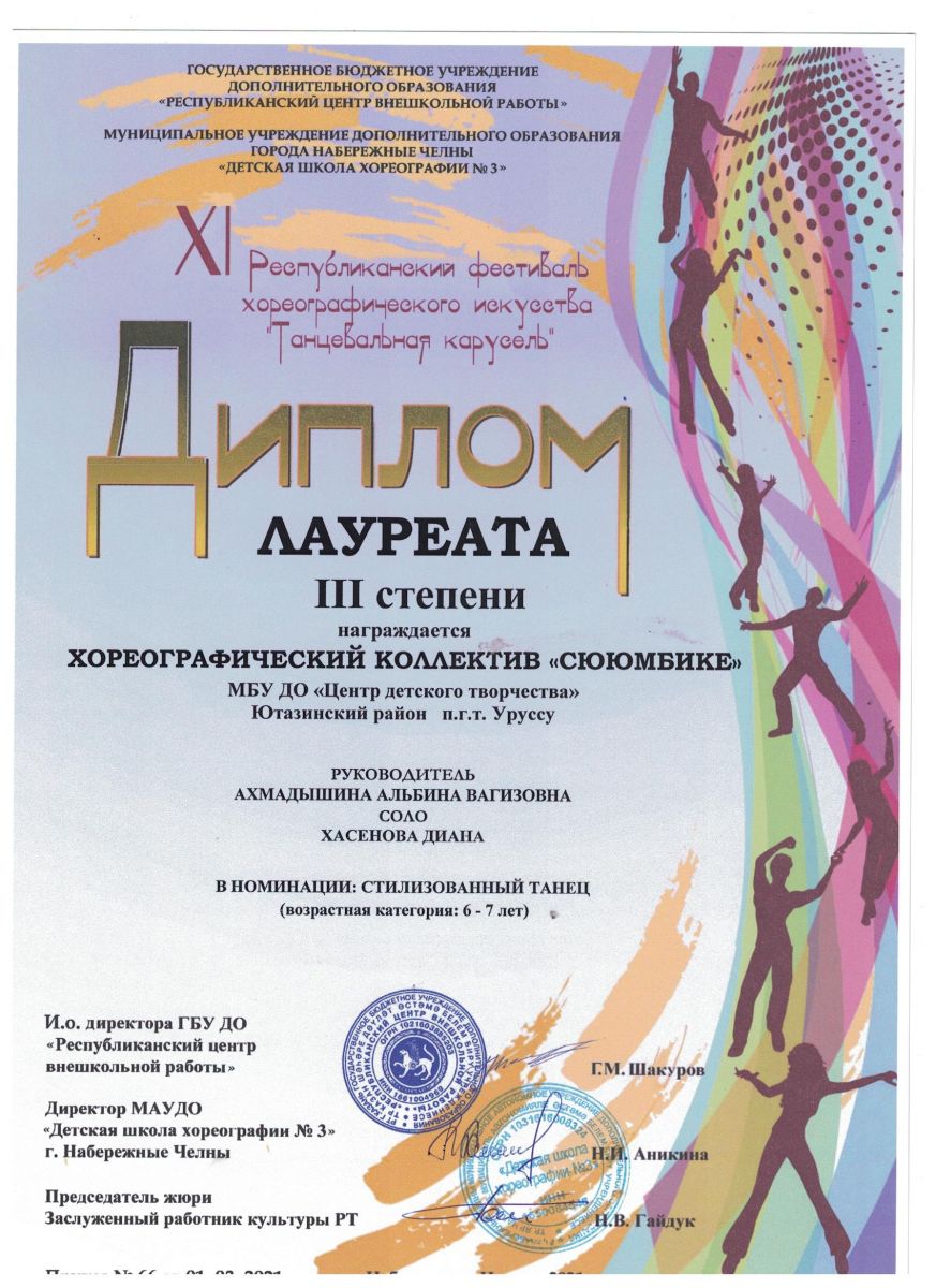 /Диплом Лауреата 3 степени хореографический ансамбль Сююмбике Танцевальная карусель.jpeg