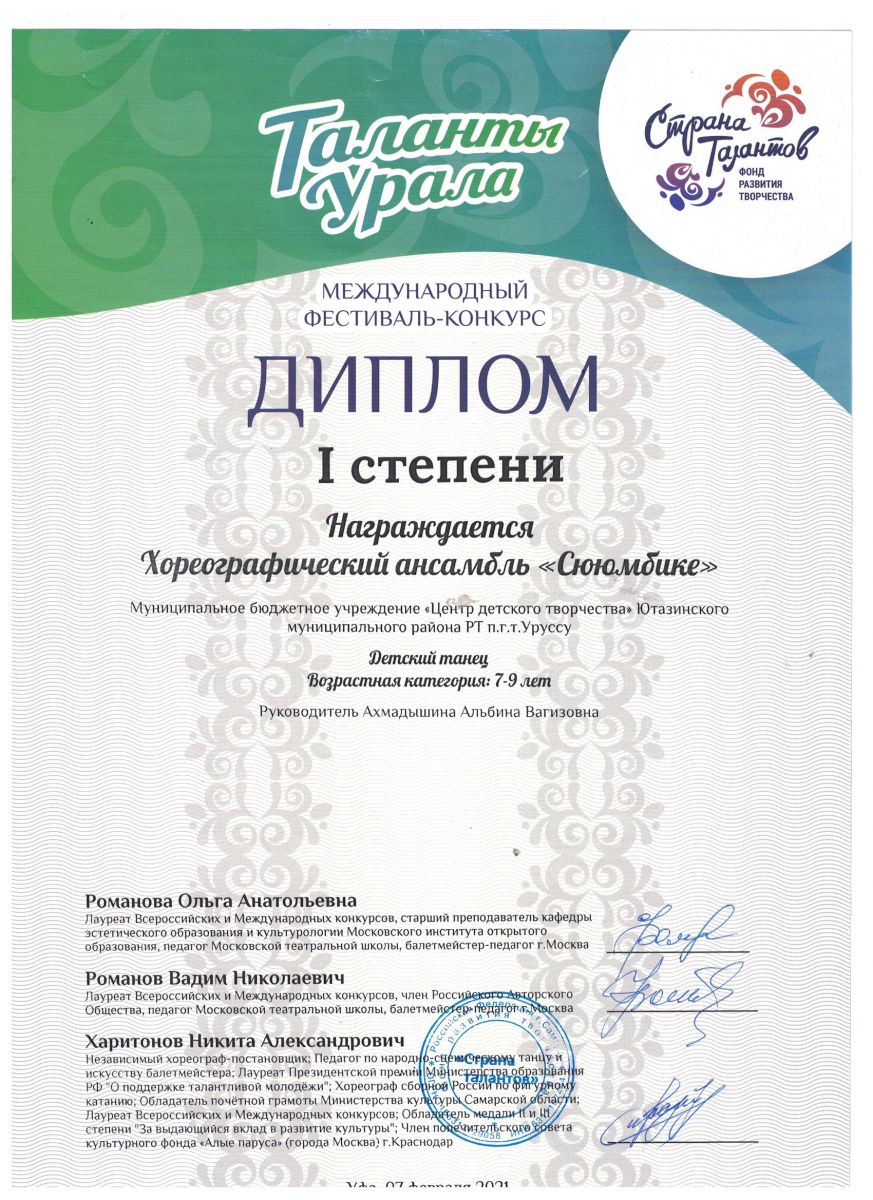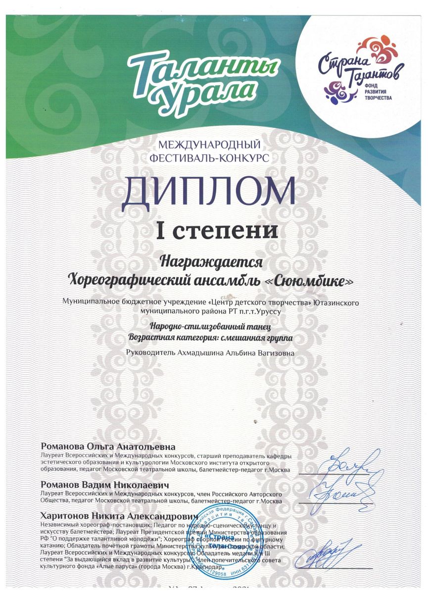 /Диплом 1 степени хореографический ансамбль Сююмбике Таланты Урала.jpeg