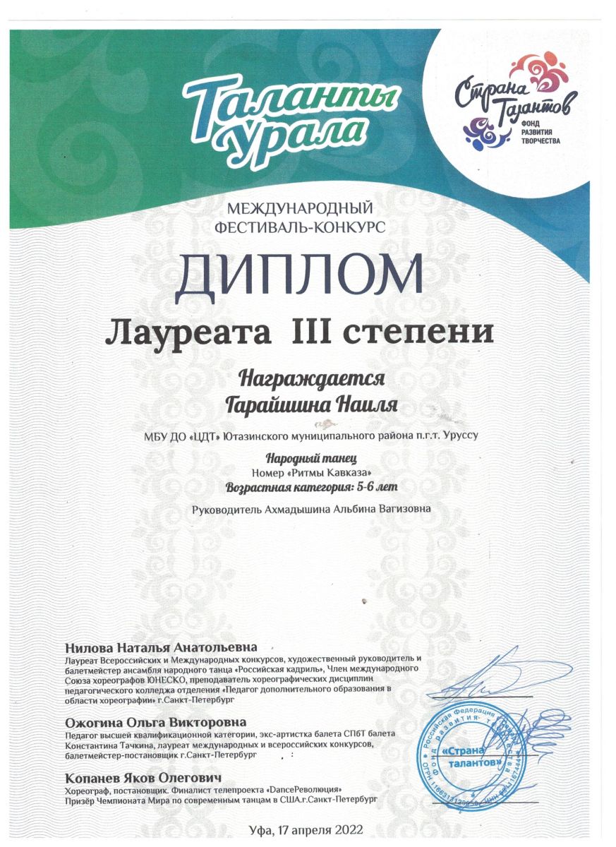 /Лауреат 3 степени Гарайшина Наиля Международный фестиваль конкурс Таланты Урала.jpeg