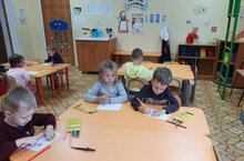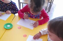 На данном занятии ребята учились аккуратно наклеивать изображения, закрепляли представления о предметах круглой формы. Также ребятишки учились описывать предметы по размеру, форме, цвету. С заданием все дети справились. Мальчики и девочки много играли, выполняли упражнения для пальчиков. -