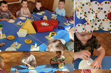 Аппликация "Декоративная тарелочка" (1мл.группа). Цель: закрепить геометрические фигуры( треугольник, квадрат, круг), научить наклеивать и располагать изображение в кругу. 22.03.2022