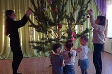Украшение елки к новогоднему утреннику. Совместная работа воспитателей и детей 24.12.2021