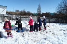 Трудовое воспитание "Раскидывание снега" 10.04.2018