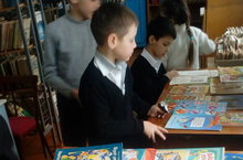 Учащиеся начальной школы регулярно посещают библиотеку: читают вслух книги, знакомятся с новинками, пролистывают периодические издания.