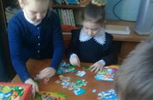 1-3 классы в рамках Недели детской книги собирали пазлы "Любимые сказки".