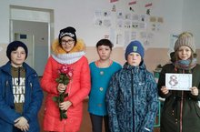 Участники SMS-отряда "Шанс" поздравили с Женским днём - 8 Марта женщин-пенсионеров. Подарили им розы и раздали пригласительные на общешкольное мероприятие, которое состоится 7 марта.