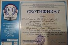 Ученица 9 класса Д.Швин приняла участие во 2-ом (очном) этапе Республиканской конференции школьников "Их имена составили славу России" (руководитель В.Н. Нафикова).