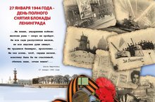 День воинской славы России — День снятия блокады города Ленинграда (1944 год) отмечается в соответствии с Федеральным законом от 13 марта 1995 года № 32-ФЗ «О днях воинской славы (победных днях) России».В 1941 году Гитлер развернул военные действия на подступах к Ленинграду, чтобы полностью уничтожить город. 8 сентября 1941 года кольцо вокруг важного стратегического и политического центра сомкнулось. 18 января 1943 года блокада была прорвана, и у города появился коридор сухопутной связи со страной. 27 января 1944 года советские войска полностью сняли длившуюся 900 дней фашистскую блокаду города.В результате побед Советских Вооруженных Сил в Сталинградской и Курской битвах, под Смоленском, на Левобережной Украине, в Донбассе и на Днепре в конце 1943 — начале 1944 года сложились благоприятные условия для проведения крупной наступательной операции под Ленинградом и Новгородом. -