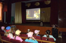 Ребята, посещающие пришкольный лагерь, ходили на мультфильмы в сельский Дом культуры.