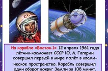 Классный час "Первый космонавт - Юрий Гагарин" 12.04.2016