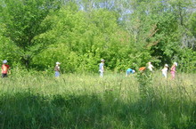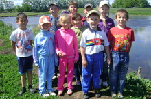 Ребята, посещающие летний пришкольный лагерь, ходили на экскурсию на пруд.