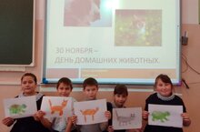 Ежегодно 30 ноября во многих странах отмечается Всемирный день домашних животных. Он посвящен всем одомашненным человеком животным и служит напоминанием всему человечеству об ответственности за «братьев наших меньших». В этот день учащиеся просмотрели презентацию,закрепили знания о домашних животных, рисовали своих любимых питомцев.
