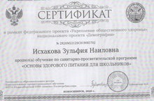 В рамках реализации НП «Демография» учителя начальных классов прошли обучение по санитарно-просветительской программе "Основы здорового питания школьников".