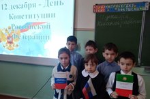 Учитель начальных классов Исхакова З.Н. провела классный час в 1,3 классах на тему "Конституция РФ - наш основной закон". Цель: познакомить учащихся с Конституцией России, объяснить основные обществоведческие понятия, развивать познавательный интерес к своей Родине.