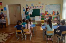 Сегодня на базе детского сада 7 проходит семинар по билингвальному образованию для воспитателей детских садов с участием автора программы УМК "Татарча сейляшибез" Зариповой З.М. В рамках данного семинара для воспитателей района показано занятие по обучению русскоязычных детей в подготовительной группе,которое провела Шакирова А.Р- воспитатель по обучению детей татарского языка детского сада 7. -