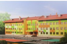 В скором времени в микрорайоне Солнечный распахнет свои двери новая школа. На сегодняшний день продолжаются работы по оформлению яркого фасада здания, внутренней отделке помещения.