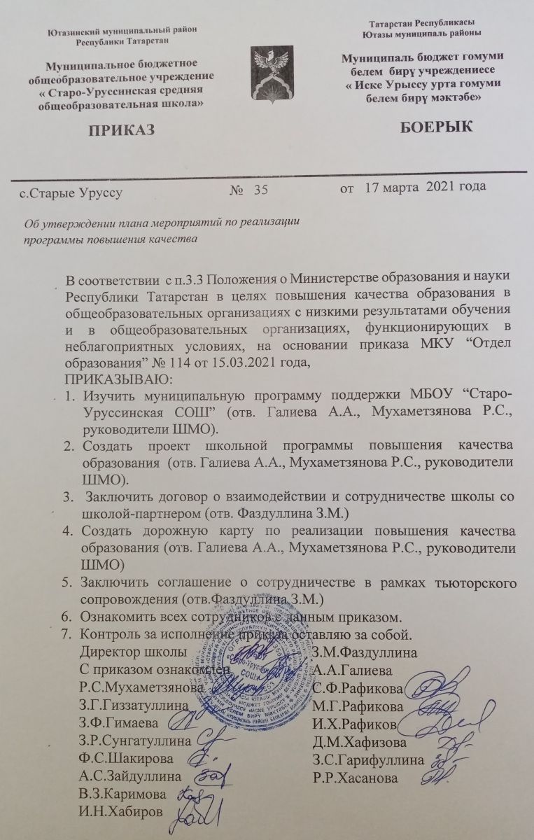 Приказ МБОУ "Старо-Уруссинская СОШ"