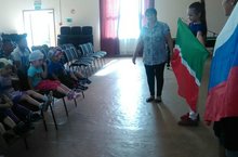 22 август безнең балалар бакчасында дәүләт флагы көне 22.08.2017 Мәдәният йорты хезмәткәрләре Мәккә Хазиева hәм Флюза Гарипова "Аккош" балалар бакчасы балаларын Татарстан Республика hәм Россия флаглары белән таныштырдылар