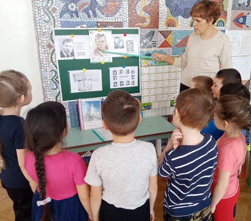 Сегодня в нашем детском саду в честь дня рождения поэта прошло мероприятие "Муса Жэлил герой шагыйрь".Его целью было ознакомление детей жизнью и творчеством поэта.На мероприятии дети рассказывали заранее выученные стихи на татарском и русском языке.