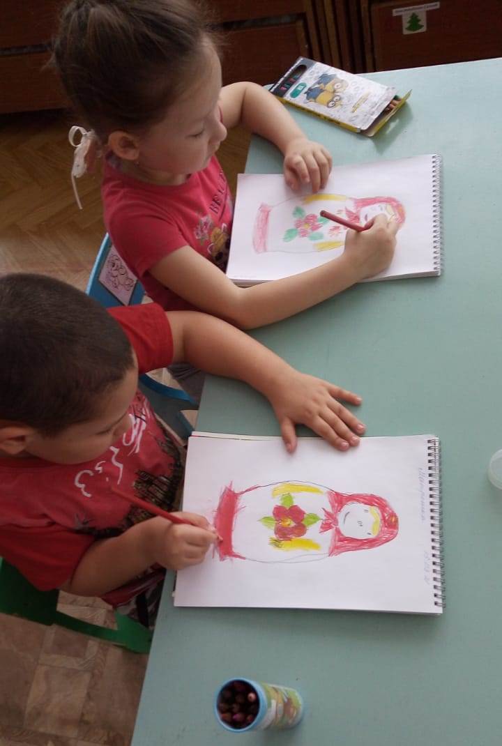 Художественно-эстетическое развитие.Рисование.Тема:"Весёлые матрёшки"
