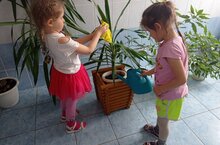 Безнең кече һәм өлкән төркем тәрбиячеләре балаларны бүлмә үсемлекләрен карауның гади күнекмәләренә өйрәтәләр: су сибәргә, җир йомшартырга, чәчәкләрне юарга һәм сиптерергә. Табигатькә карата мәхәббәт, кайгыртучанлык һәм гуманлы караш тәрбияләү максатыннан да танып-белү характерындагы дәресләр үткәрәләр.