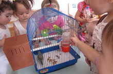 Очаровательный, милый птенец подрастает и уже очень энергичен. Дети с удовольствием наблюдают за их семейной суетой. Попугайчик кричит, машет крыльями и зовёт своих родителей.