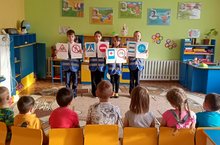 Ребята повторили правила дорожного движения, собирали из пазлов дорожные знаки, вспомнили правила светофора. А в конце мероприятия все получили сладкие призы от ЮИДовцев. -