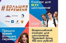 Приглашаем ребят 5-8 классов принять участие во Всероссийском конкурсе для школьников "Большая перемена". Это шанс попасть в "Артек", огромный призовой фонд и реализация ваших возможностей.