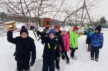 В рамках Дня зимующих птиц России обучающиеся 1 и 2 классов (кл. руководители – Зайдуллина А.С., Сунгатуллина З.Р.)сделали кормушки и повесили их на территории школы. Зимующих птиц угостили кормом в виде зерна и крошек белого хлеба. / Россиядә кышлаучы кошлар көне кысаларында 1 һәм 2 нче сыйнныф укучылары (кл. Җитәкчеләре – Зәйдуллина А.С., Сөннгатуллина З.Р.) җимлекләр ясап, аларны мәктәп территориясендә элделәр. Кышлаучы кошларны бөртек, ак ипи валчыклары белән сыйладылар.