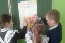 Сегодня День Спасибо. Учащиеся 2го класса в течение дня выполняли различные задания, говорили друг другу слова благодарности и дарили лепестки цветов. В конце дня у них получился красивый цветок Спасибо.