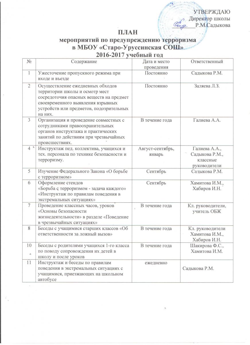 План мероприятий по профилактике терроризма 2020-2021 учебный год