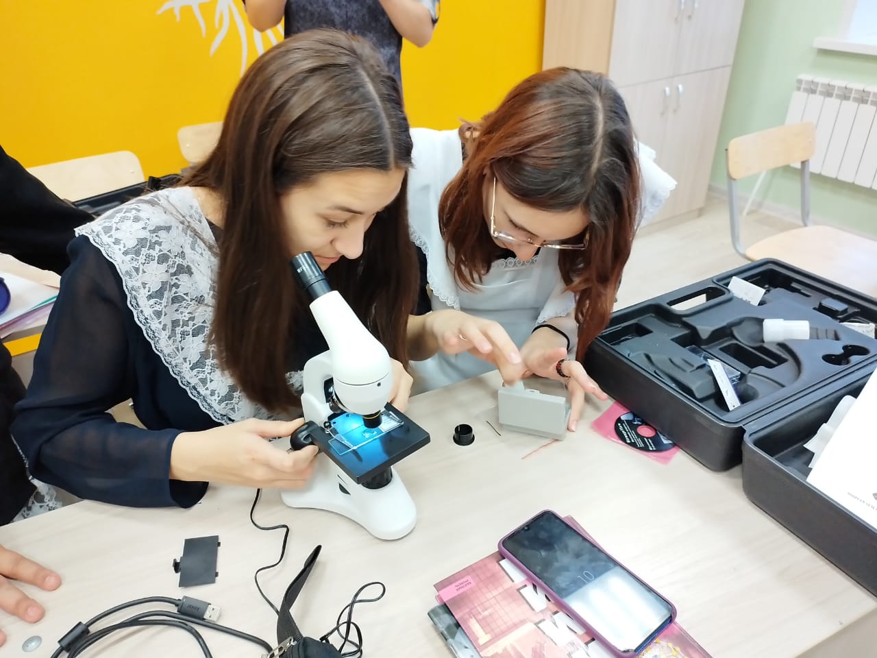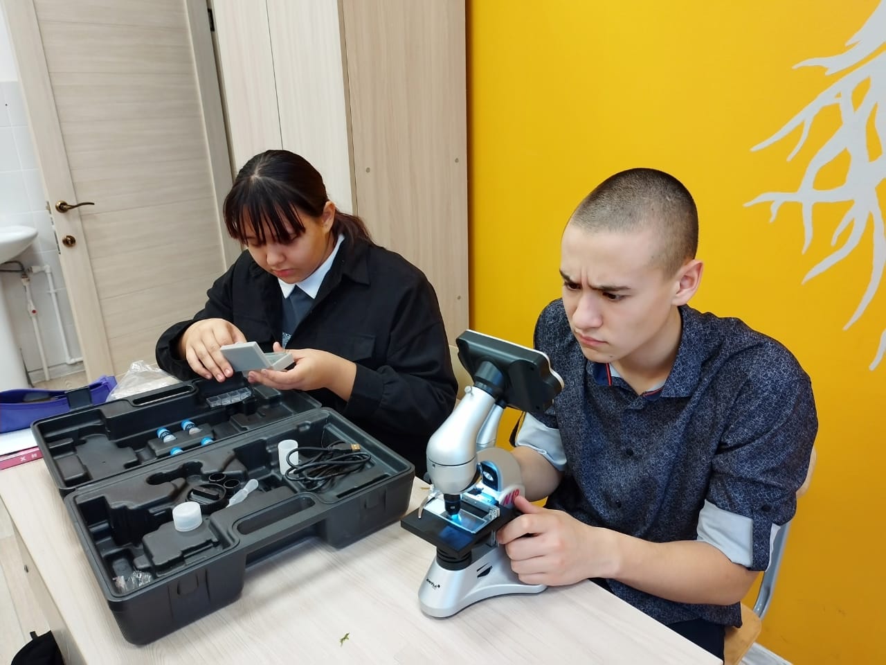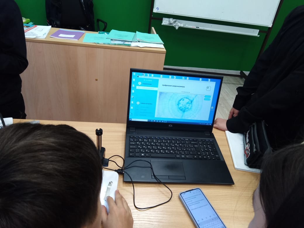 14.10. Учитель биологии Хабиров И.Н. с обучающимися 10-11 классов провел внеклассное мероприятие «Легко ли стать ученым» по направлению «Биология и экология». Ребята работали с микроскопами и цифровой лабораторией по биологии, выполнили микропроект, где постарались достичь поставленной цели: узнать основы научной деятельности, решали поставленные задачи, учились работать в группе и представлять свой проект сверстникам. фото2, фото3