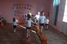 Максат: хәрәкәт темпын алыштыру белән йөрүне кабатлау; уң һәм сул аягында, капчыклар ыргыту, гимнастика стенасына менү; өстәмә биремне үтәү; йөргәндә тигезлекне саклау күнегүләрен кабатлау.
