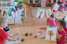 Цель: Закрепление умения рисовать деревья с помощью живописных средств (акварельных красок).