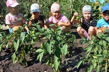 На нашем огороде дети, совместно с воспитателями, посадили морковь, свеклу, перец, огурцы, горох, помидоры и зелень. Дети самостоятельно сеяли семена и садили рассаду. Мы учили детей поливу, объясняя, что вода необходима для роста растений. Помогая на огороде, дети получают представление о выращивании растений из семян. На протяжении лета дети будут наблюдать, как появятся ростки растений и окрепнет рассада. Ежедневно проводится прополка и полив грядочек. А мы будем ждать богатый урожай!