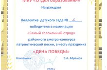 Поздравляем воспитанников старшей группы в победе в номинации " Самый сплоченный коллектив"