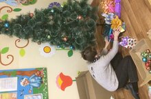 Җанлану барлык төркемнәрдә дә хөкем сөрә. Бакчаның бизәлгән биналары алдан ук өлкәннәргә дә, балаларга да бәйрәм кәефе тудыра. Бизәлгән чыршы балалар өчен уен бүлмәләрендә урнашты. Кар бөртекләрендәге тәрәзәләр, мишура, стенадагы гирляндалар, ялтыравыклы сәгатьләр күзләрне сөендерә.