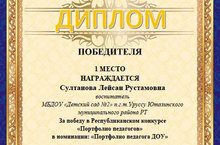 Поздравляем воспитателя по обучению детей татарскому языку Султанову Лейсан Рустамовну занявшего 1 место на Республиканском конкурсе "Порфолио педагогов" в номинации "Портфолио педагога ДОУ"