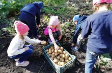 Вкусен. Людям он по нраву.Клубни дружно соберемКак просушим, приберем.Кто сейчас за стол садится,Может сразу угоститься. -