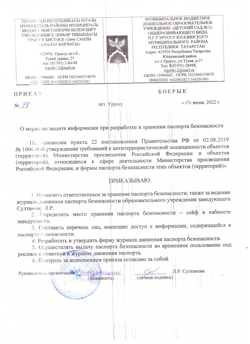 Муниципальное бюджетное дошкольное образовательное учреждение «Детский сад №2» общеразвивающего вида п.г.т.Уруссу Ютазинского муниципального района Республики Татарстан\ Татарстан Республикасы Ютазы муниципаль районы муниципаль бюджет мәктәпкәчә белем бирү учреждениесе шәһәр тибындагы Урыссу бистәсе "2 нче санлы балалар бакчасы"