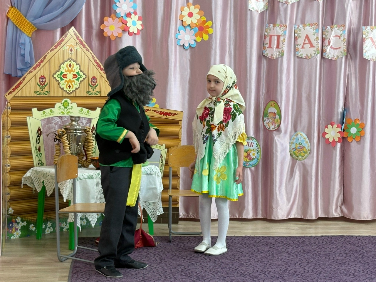 сегодня дети в доступной форме узнали, почему на Пасху красят яйца и пекут куличи, водили задорные хороводы, участвовали в инсценированной сказке, а так же с большим удовольствием играли в игры-забавы.